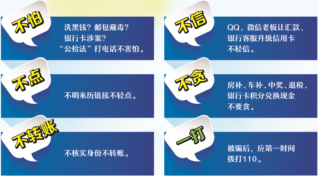 湯警官建議:企業職工要不斷加強自我保護意識,及時學習相關法律知識,不點擊來歷不明的鏈接,不接聽信陌生電話內容,做好單位資料的保密工作,共同筑牢心防堤壩!防范詐騙要做到“五不”(不怕、不點、不信、不貪、不轉賬)、“一打”(被騙后應第一時間撥打110)“六律”。