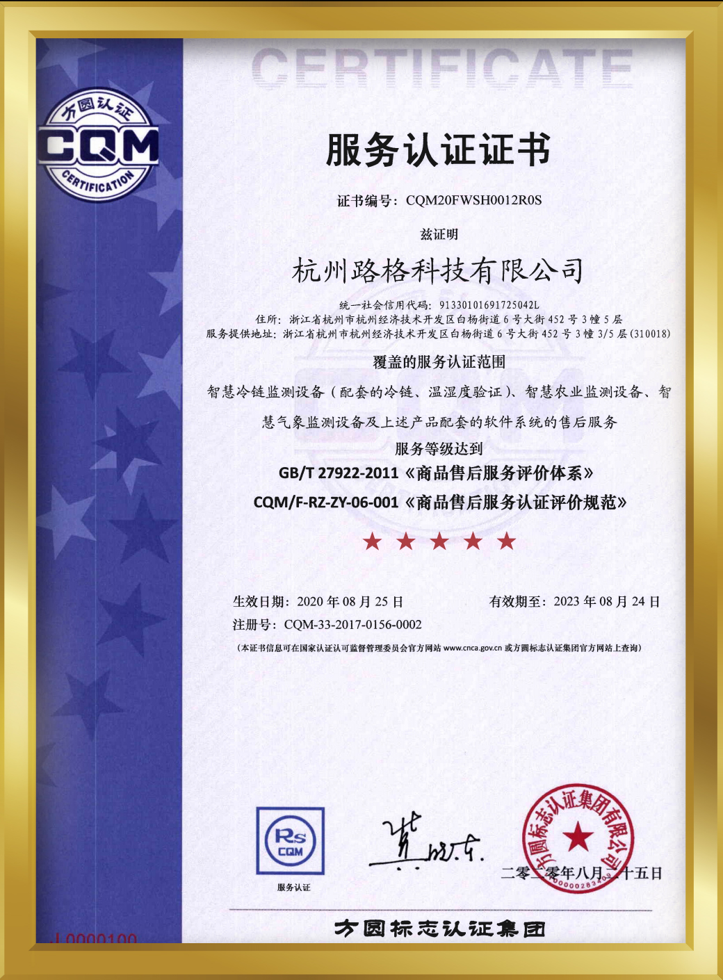 8月18-8月19日,經(jīng)專家組嚴格評審,我司順利通過了《商品售后服務評價體系》GB/T 27922-2011和《商品售后服務認證評價規(guī)范》CQM/F-RZ-ZY-06-001認證評價,服務能力達到五星級最高標準。