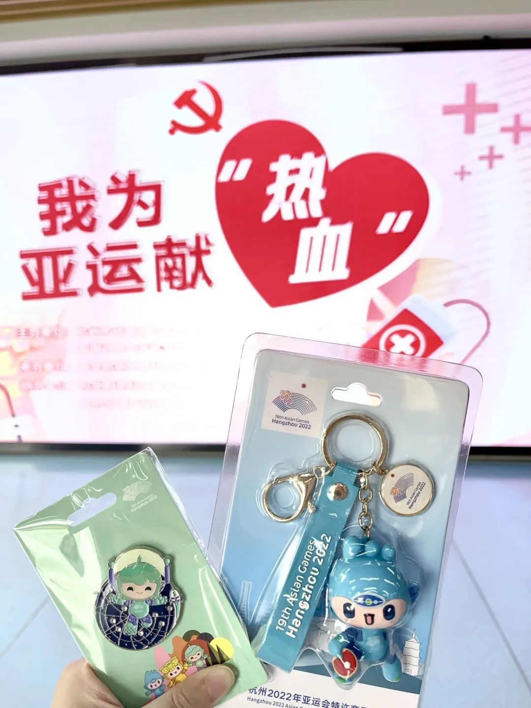我司黨支部為每一位勇敢的無償獻血者準備了精美的亞運文創紀念品,此外,錢塘區衛健委大力支持本次應急獻血活動,特為獻出愛心的無償獻血者準備了小禮品。