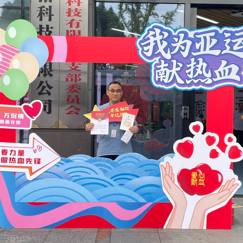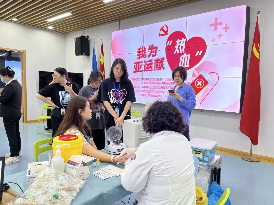 為杭州第19屆亞運會、第4屆亞殘運會賽會期間血液應急貢獻力量,增強黨員同志的服務意識和責任擔當,進一步弘揚志愿服務的奉獻精神,今天上午,在我司一樓黨群服務驛站開展了由區衛健局、大創小鎮黨工委、大創小鎮管理辦公室、中國計量大學光學與電子科技學院光科系教工黨支部主辦,大創小鎮產業社區協辦,我司黨支部承辦的“我為亞運獻熱血”活動,錢塘區衛健局副局長王燕平,產業社區書記漏君鋒到場指導。