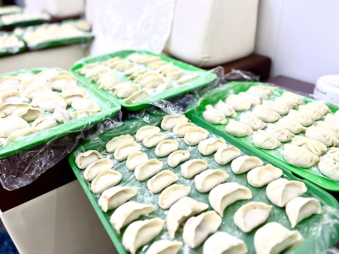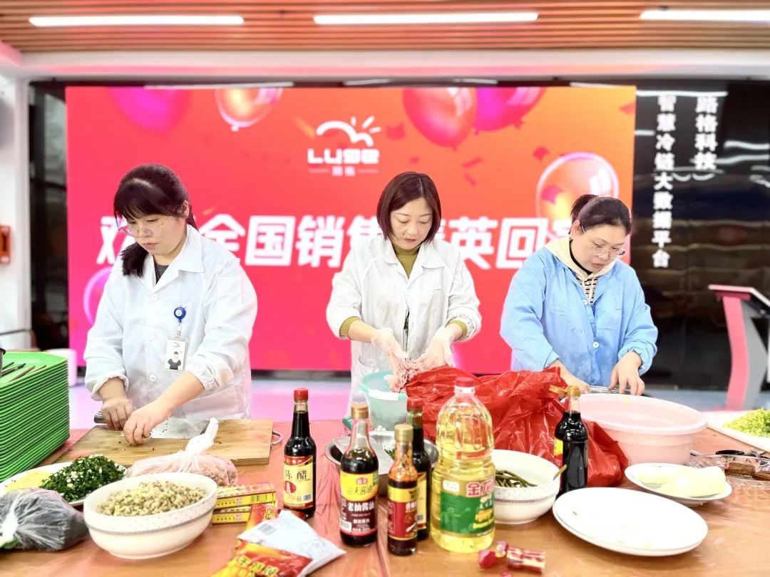 會議后,忙碌了一天的路格家人們為公司全體員工和駐外銷售精英們盛上了一份份美味的手工現包餃子,有艾餃、煎餃、蒸餃、水餃等各種花樣的“餃子”,有白菜、芹菜、薺菜三種餡料可選擇,桌上還有駐外精英們帶回來的特產,大家圍桌而坐,吃著熱餃子,相談甚歡。