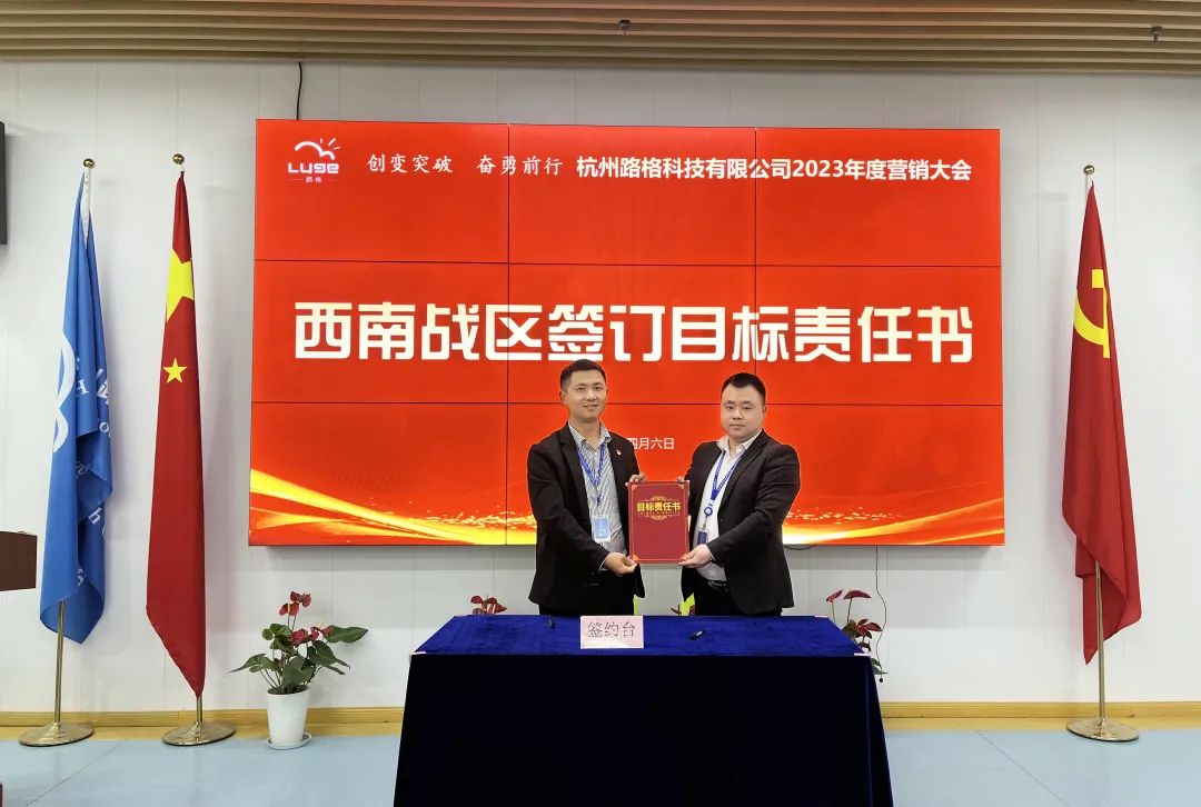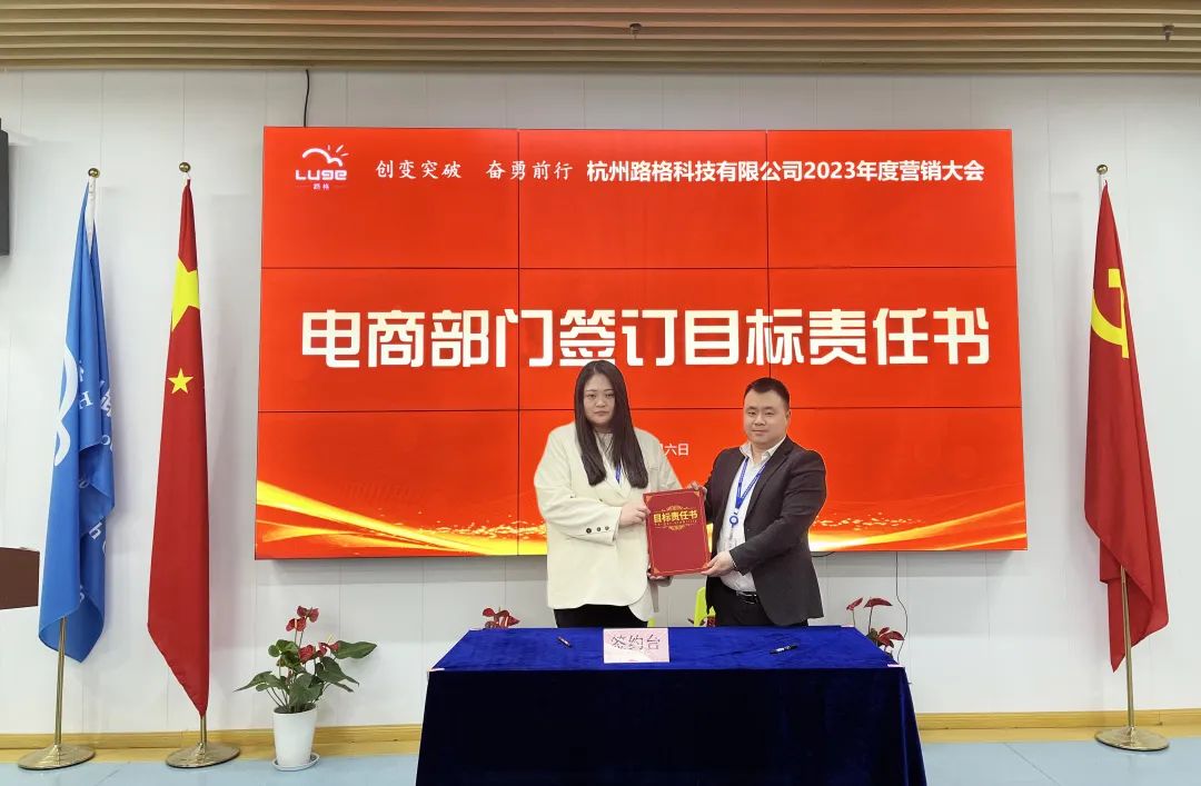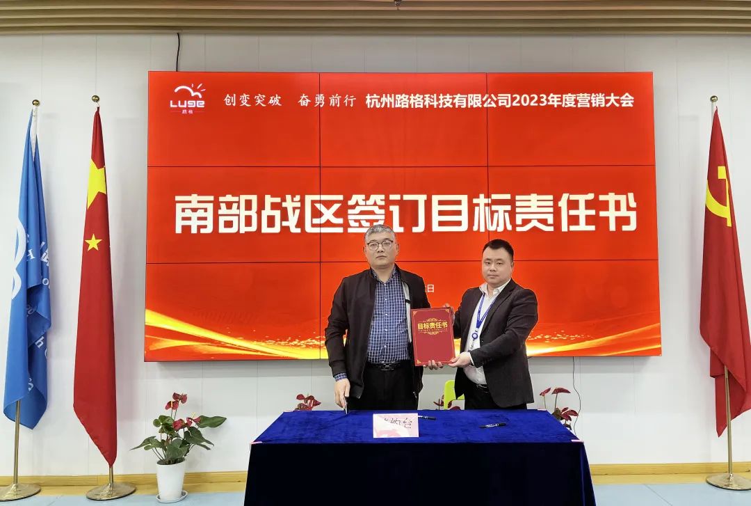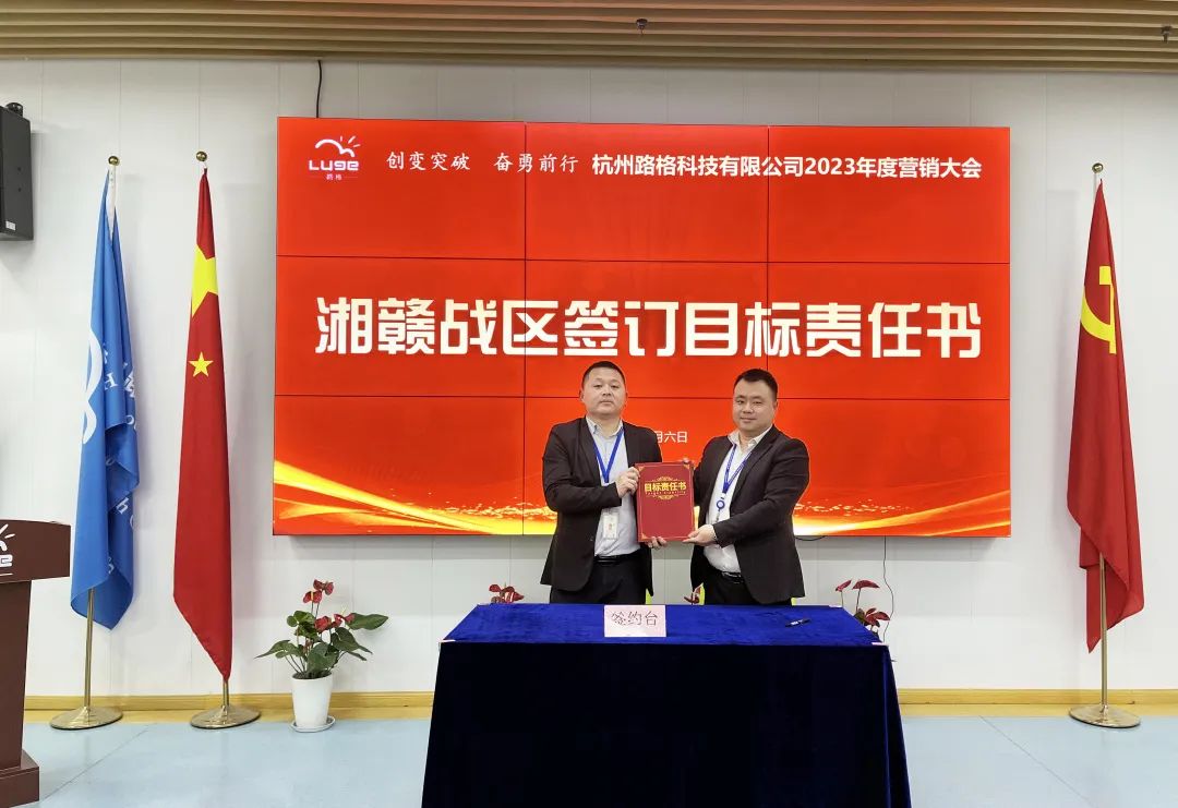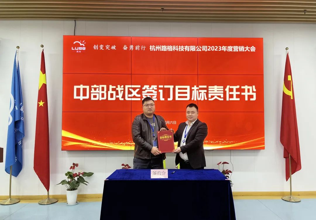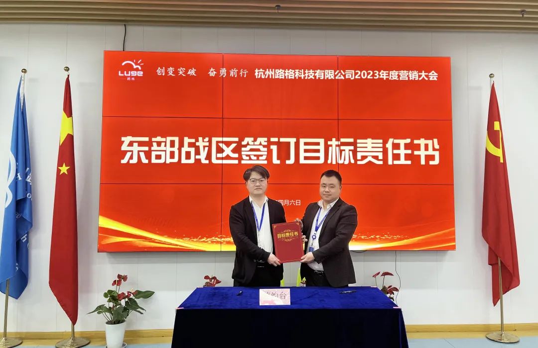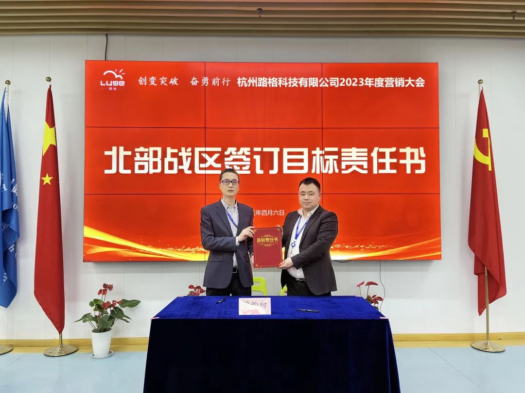 各大區經理分別是張英杰(北部戰區)、胡克清(東部戰區)、李平(西南戰區)、唐昳(中部戰區)、梁東(南部戰區)、王明(湘贛戰區)、韓麗(電商戰隊)。市場部經理田鵬與各大區經理簽訂目標責任書,并為其授旗,授旗后各大區經理揮舞了旗子,對工作做了總結和規劃,并大喊團隊口號,做完成目標表態。
