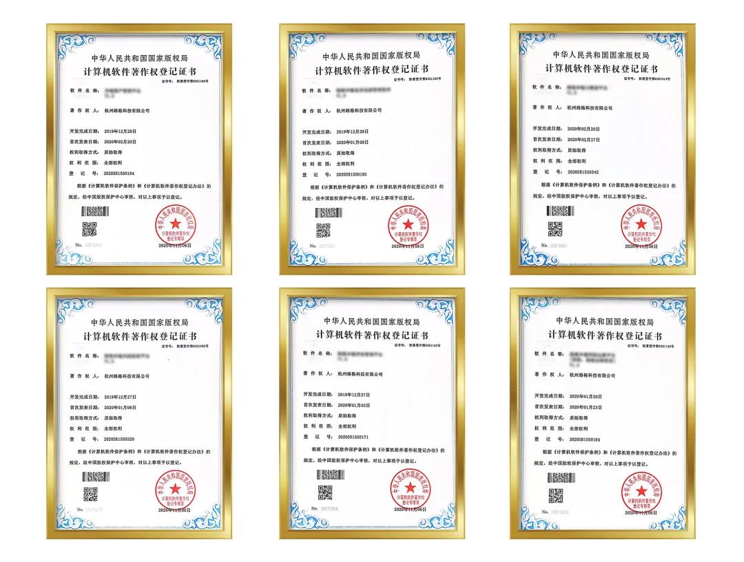 公司自2009年成立以來,已被評為“杭州市高新技術企業”,“杭州市科技雛鷹計劃企業”,“國家高新技術企業”,“浙江省軟件企業”,2016年度“浙江省小微企業成長之星”等,并先后通過了ISO9001質量管理體系認證,ISO14001環境管理體系認證,ISO45001職業健康管理體系認證,ISO27001信息安全管理體系認證,GB/T27922-2011售后服務體系五星級認證,GB/T29490-2013知識產權管理體系認證,公司實驗室通過了ISO17025國家CNAS實驗室認可,截止目前已經擁有35項專利證書和 21項軟件著作權證書。路格科技作為國家高新技術企業、浙江省小微企業成長之星,不僅注重業務的擴展和人員的培養,同時也更重視軟硬件研發,擁有多項自主知識產權、軟件著作權。