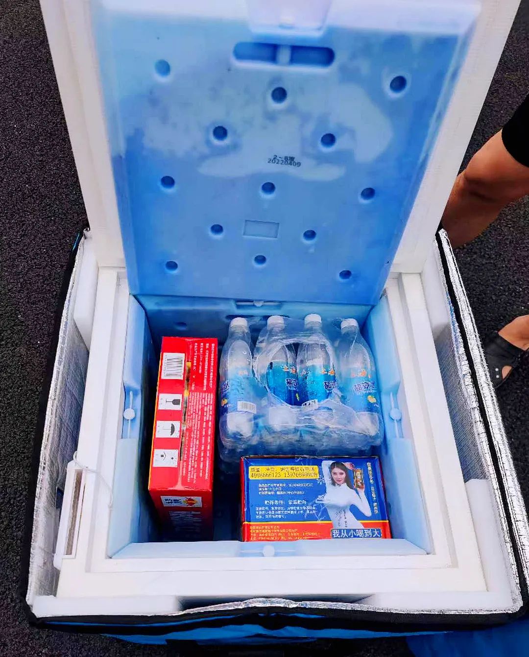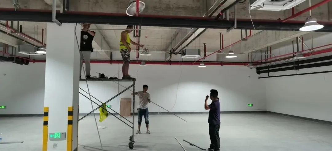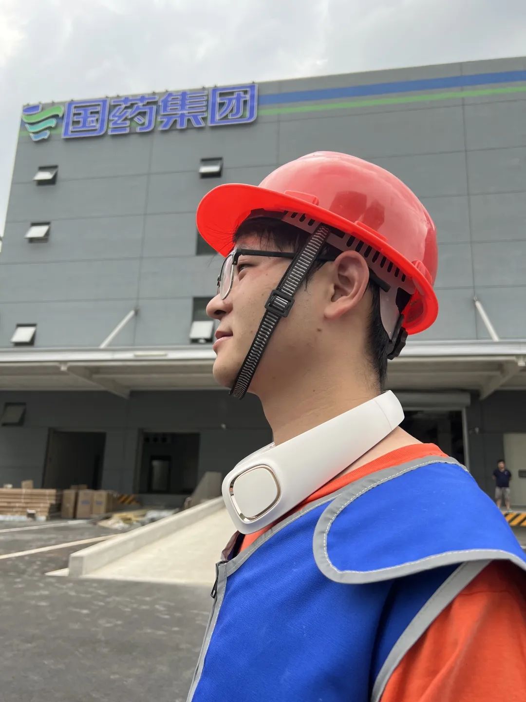 我司執(zhí)行董事何望君及總經(jīng)理陳樹浩親自裝車帶隊將一箱箱解暑降溫的冰鎮(zhèn)飲料、路格清涼裝備-掛脖電風扇、降溫冰衣、消暑藥品等降溫品送到員工們手中,其他各部門同事周末也一起走進國藥施工現(xiàn)場,配合安裝部門工作。