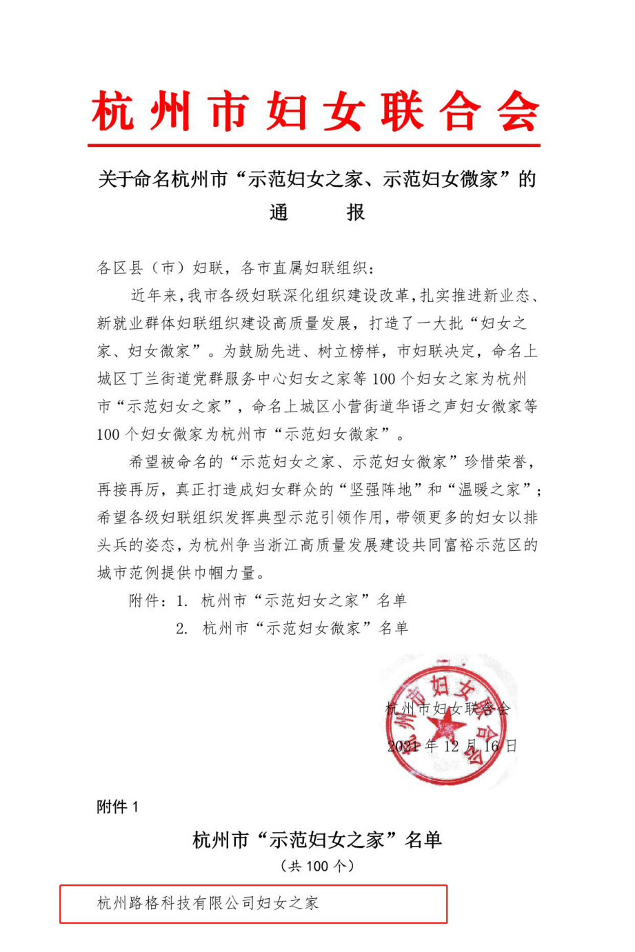近日,我司被杭州市婦女聯合會評為“杭州市示范婦女之家”。