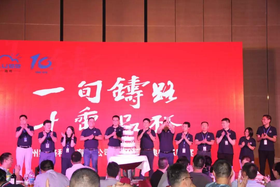 當慶祝蛋糕推上舞臺,路格所有核心領導和部門負責人登上舞臺,向所有在場的客人、路格家人表達對路格十周年生日的祝福。