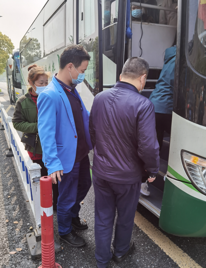 早上,公司所有同事持個人身份證在公司樓下集合,乘坐白楊街道安排的大巴車前往指定接種地點。