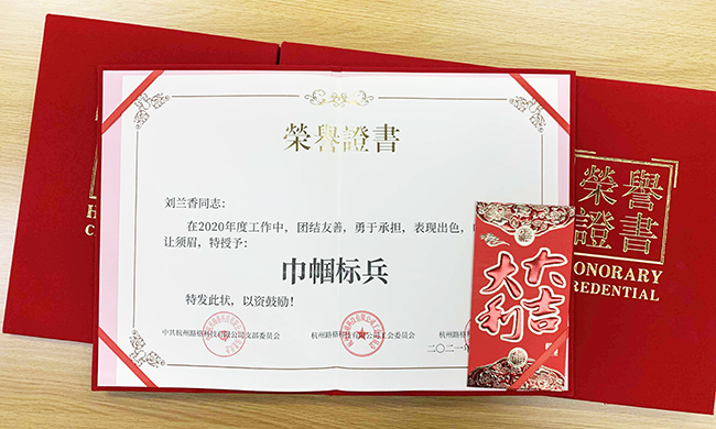 下午,在一樓會議室,公司表彰了2020年度在各個崗位上工作兢兢業業,勤勤懇懇表現突出的優秀女員工,工會主席辦公室蔣主任為巾幗標兵頒發了榮譽證書,激勵大家再創輝煌,在推進路格各項事業發展中創造新業績,成為更好的自己。