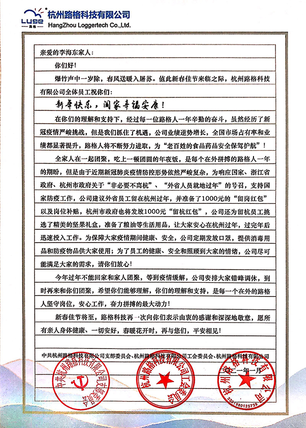 再次感謝每位路格家人的支持與理解,體諒與付出。相聚并不遙遠,最重要的是當下的安全和健康,希望大家都能夠安心留杭過年,在年節后全身心投入到工作中去,不給國家添亂,身體力行,做有擔當的路格人。待到春暖花開日,相聚言歡味更長。疫情無情人有愛,希望公司的心意能為同事們帶去溫暖和關愛,讓全體員工帶著公司的新年祝福,懷著喜悅的心情,共度美好的新春佳節,衷心的祝愿全體路格家人新的一年幸福安康!祝福路格所有新老客戶、合作伙伴、全體路格人及家屬闔家歡樂、新年大吉,萬事如意!