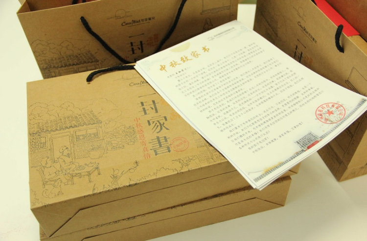 秋風送爽,經歷了盛夏的酷暑,中秋佳節在習習涼風中如約而至。2017922日,杭州路格科技有限公司提前為全體員工與家人和客戶備上了節日的禮物與祝福。在辦公室安排下,行政人員為員工與客戶準備好了一份份月餅,一份送到員工與客戶自己手上,一份以家書的形式寄給員工的家人。