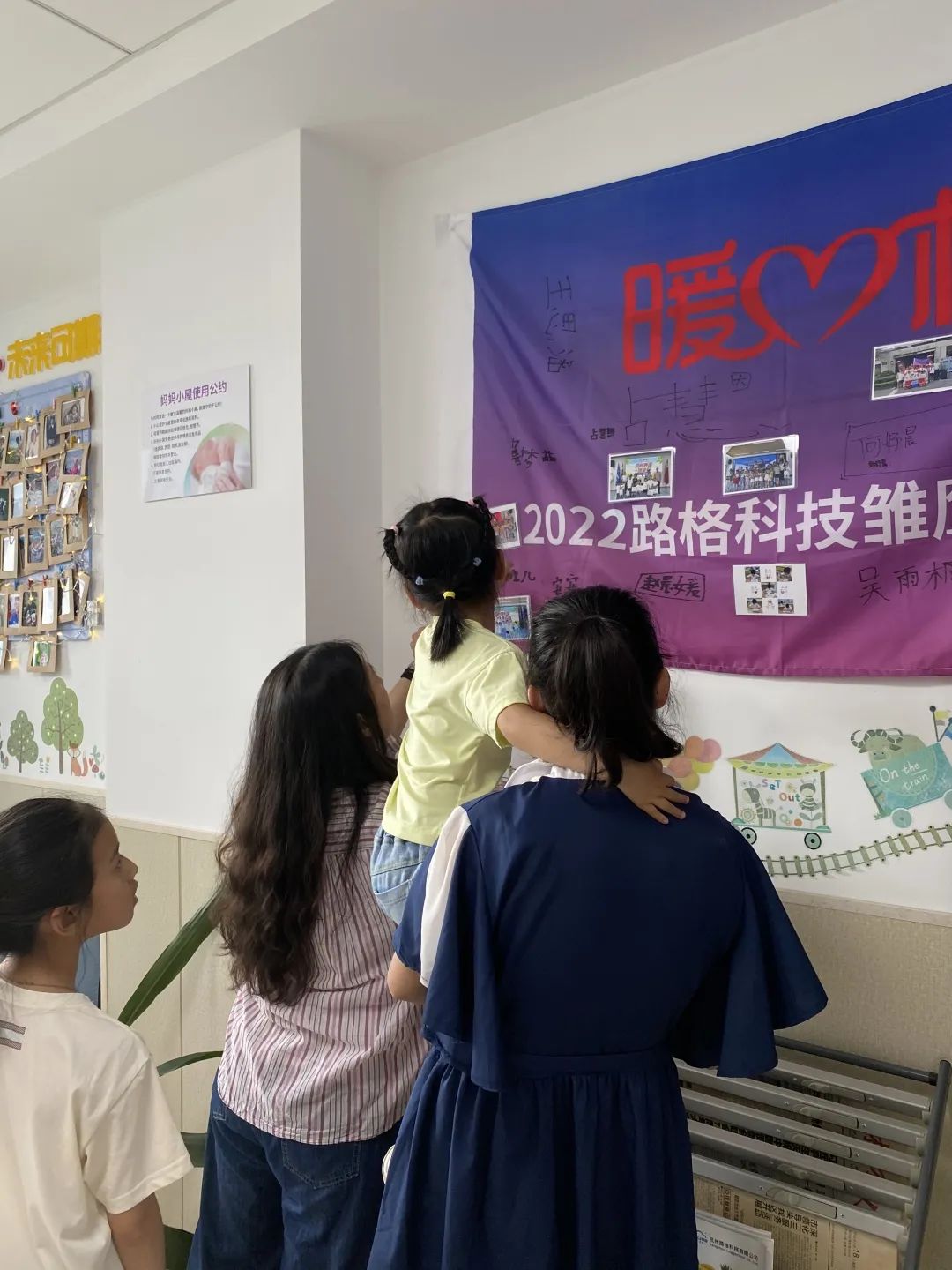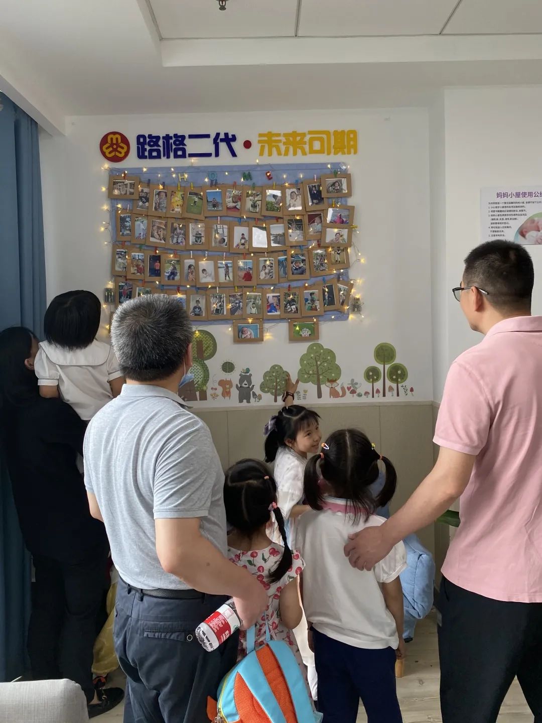 公司婦聯在媽咪小屋內增設了一面路格二代寶寶墻,小朋友們來到小屋,認真尋找“小時候”的自己,開心的對爸爸媽媽說“這是我耶!”