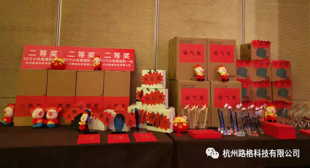 全場最火爆的場面當屬抽獎環節了。為了回饋路格家人們一年的努力和付出,本次晚會設置多個獎項:華為 Mate 20X手機、華為M5平板電腦、43吋小米電視機、小米空氣凈化器等等,精美的禮品擺滿了舞臺兩側,而每一輪的抽獎,現場都是一片沸騰,歡樂不斷。