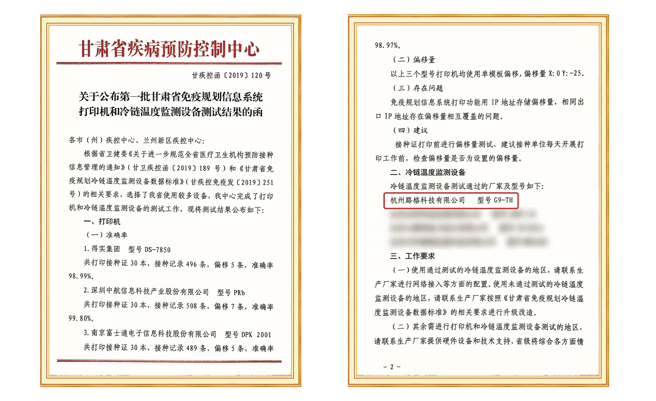 截止目前,路格科技已經服務了甘肅省眾多市、縣疾控中心,為各疾病預防控制中心的疫苗冷庫、疫苗冰箱、疫苗冷藏車、疫苗保溫箱、生物安全運輸箱等提供智慧冷鏈設備及冷鏈驗證服務。