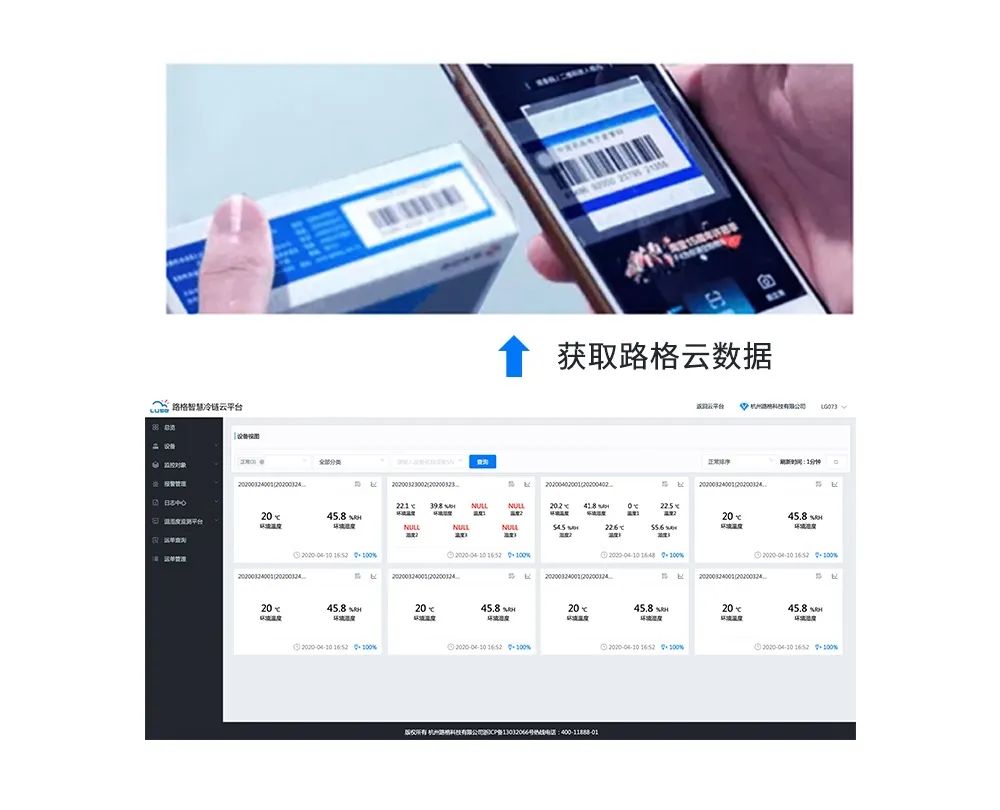 后期消費者可通過手機掃描藥品、疫苗包裝盒上的二維碼即可查看藥品的完整信息,里面的全程冷鏈數據由路格云平臺提供。